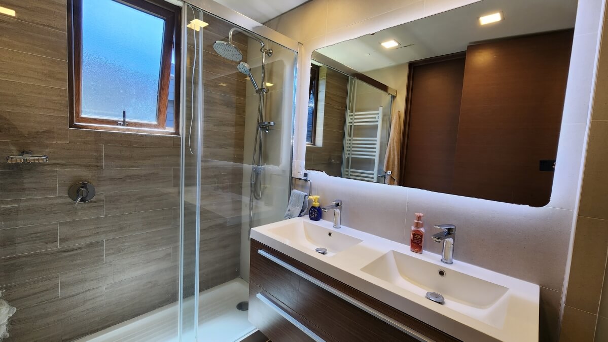 Excelente luminosidad ya que se encuentra muy bien orientada; Cuenta con calefacción central con caldera a pellet, con radiadores en todos los recintos, Finas y modernas terminaciones, materiales y artefactos de primera calidad, pisos de ingeniería, hermoso trabajo en maderas nativas todas las ventanas con termopanel, excelente sistema constructivo y aislación térmica, citófono, sistema Led en todos los recintos, iluminación exterior en un amplio jardín ya formado.