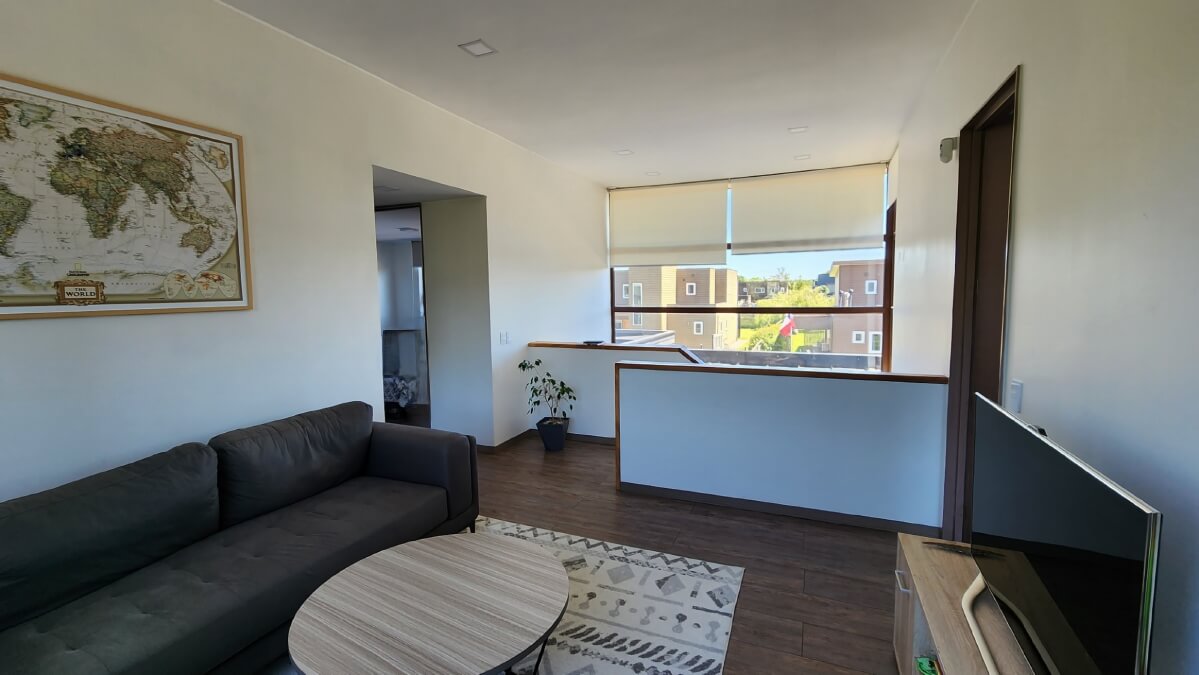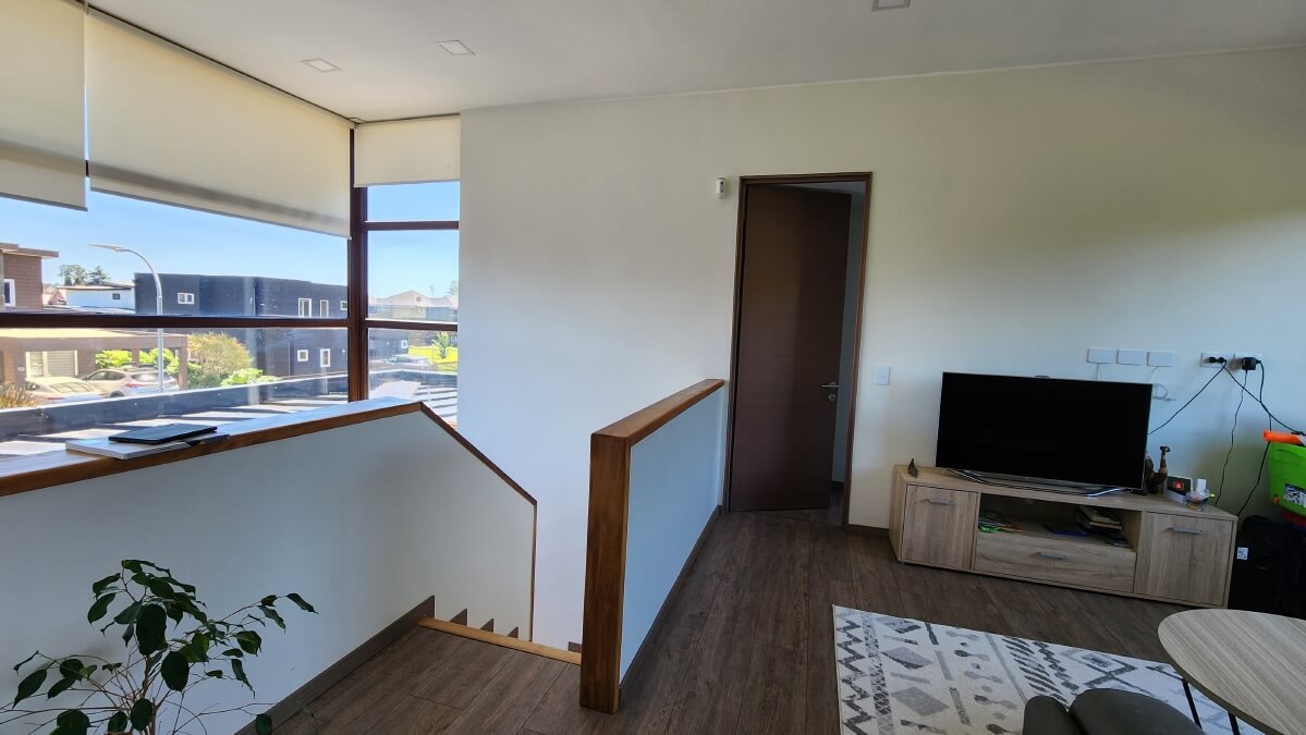 Segundo Piso: Gran estar familiar con abalconamiento hacia el hall, 3 amplios dormitorios, uno de ellos en suite, y una sala de baño completa. (Además cuenta con loza estructural para una ampliación de un 4° dormitorio).
