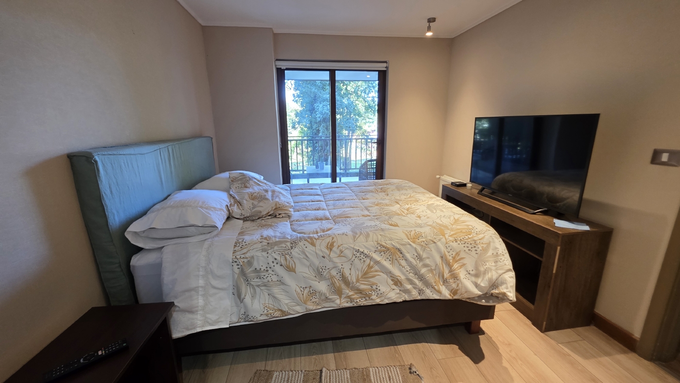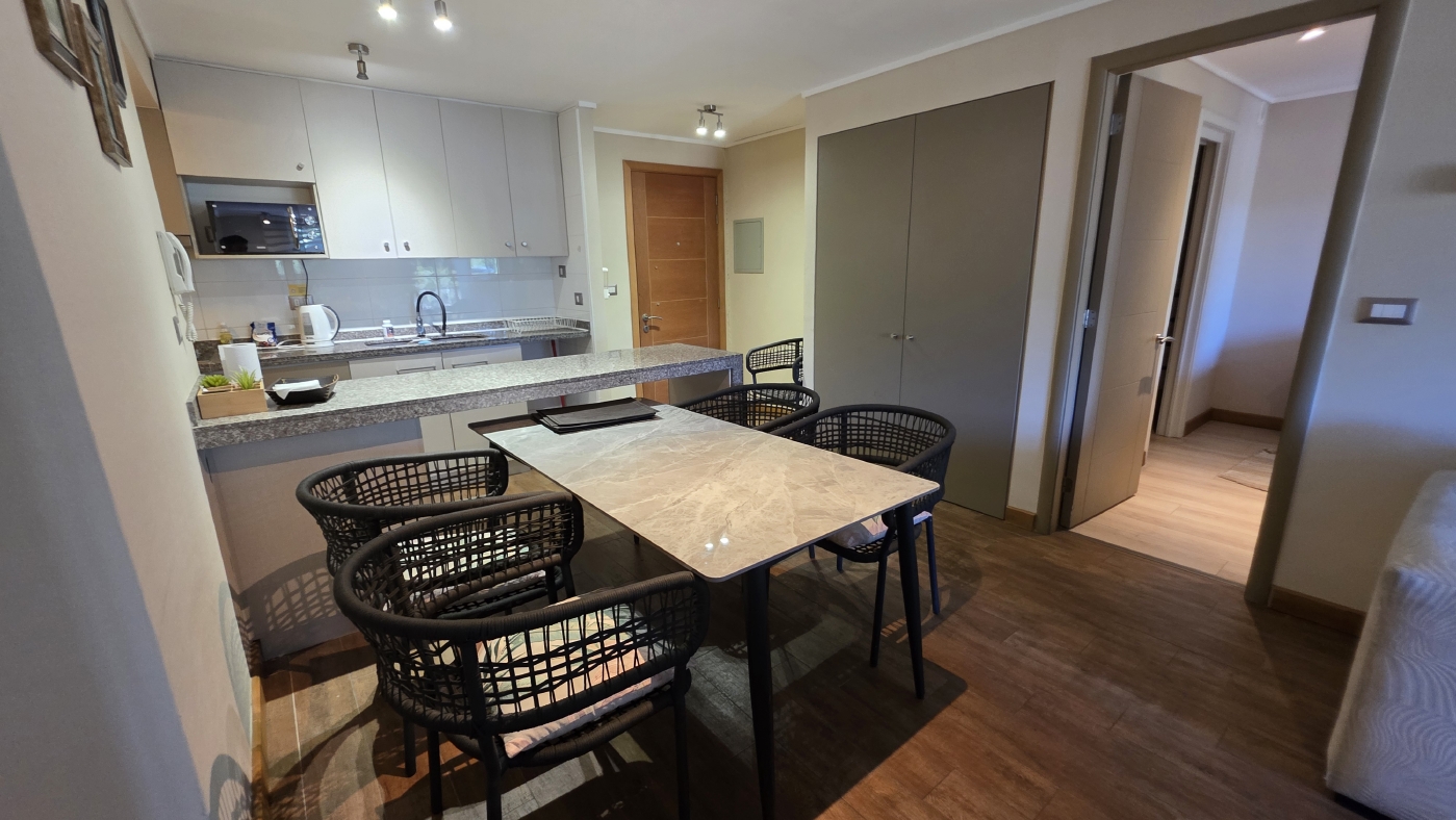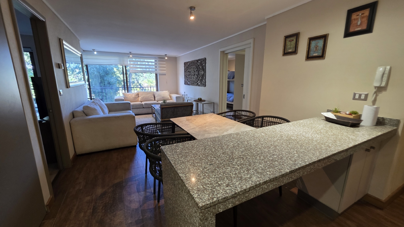 Cuenta con 85 m2 totales, los cuales tienen la siguiente distribución: Acceso al amplio Living comedor con cocina incorporada y mesón de apoyo, amplia terraza panorámica con vista al parque colindante, practica sala de estar con un baño completo y un cómodo dormitorio, luego el amplio dormitorio principal en suite con walking closet. Todos los recintos con calefacción central.