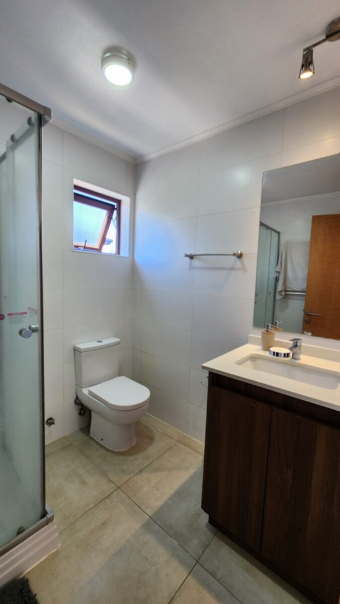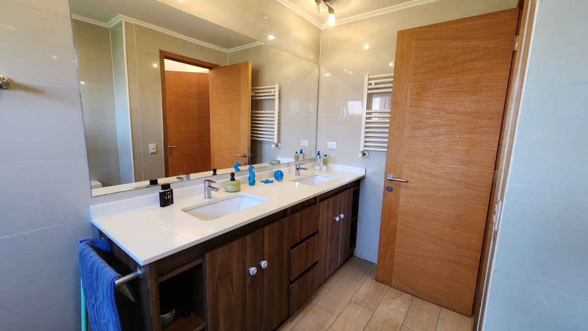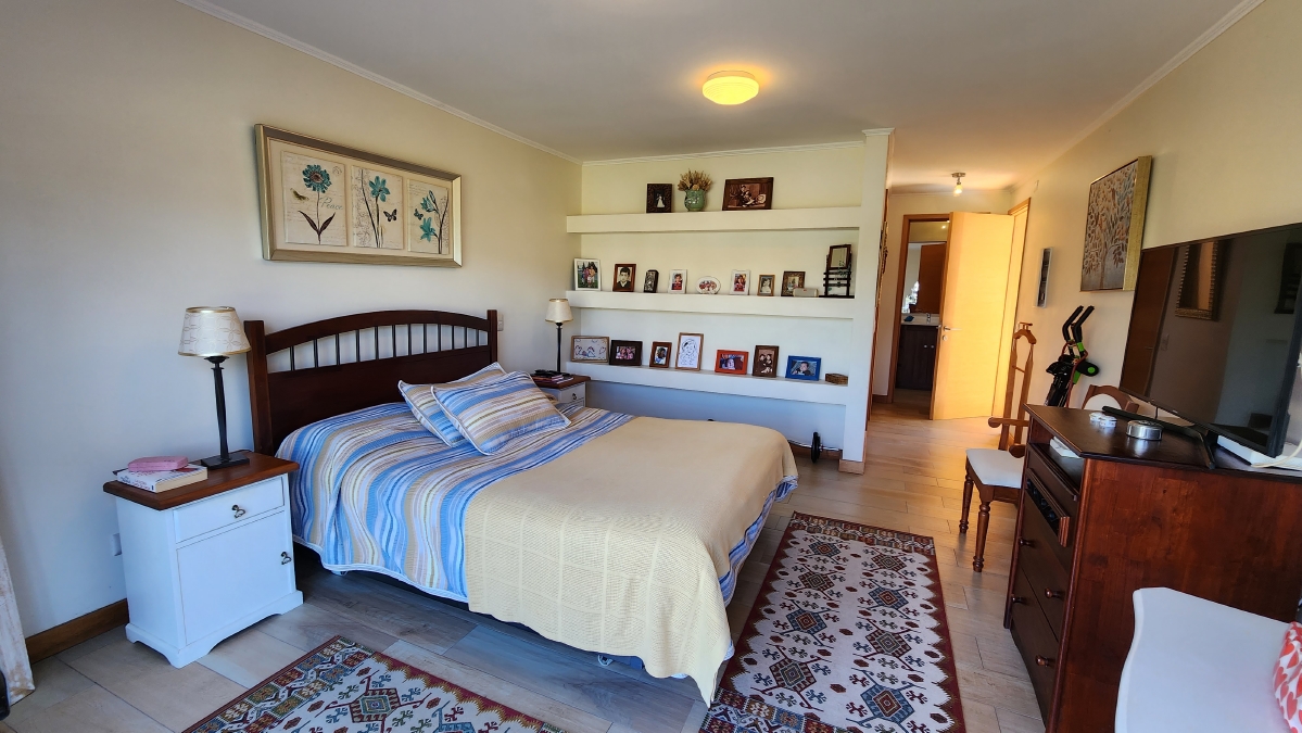Se encuentra como nueva y comprende 220 m2 más 24 m2 de quincho, que contempla el siguiente programa. Primer piso: Hall de acceso en doble altura con baño de visitas, en recinto separado el gran living con salida a la terraza y comedor, contiguo a este pero en forma independiente se alberga el gran quincho cerrado, completamente equipado con zona de parrilla, mesón tipo bar y un amplio estar. Bella cocina con isla y comedor de diario, zona de logia y dormitorito y baño de servicio. En el ala contraria se emplaza en amplio dormitorio principal con sala de baño y walking closet, con salida a la terraza.