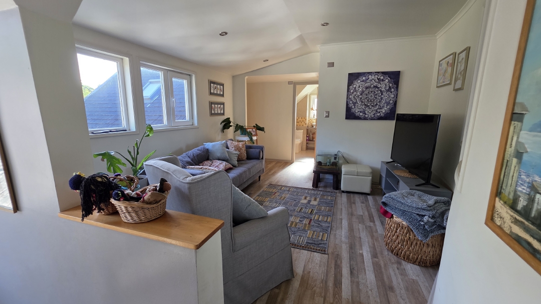 Segundo Piso: Bella sala de estar, que distribuye a los 3 dormitorios, uno de ellos en suite y los otros 2 que comparten un baño completo.