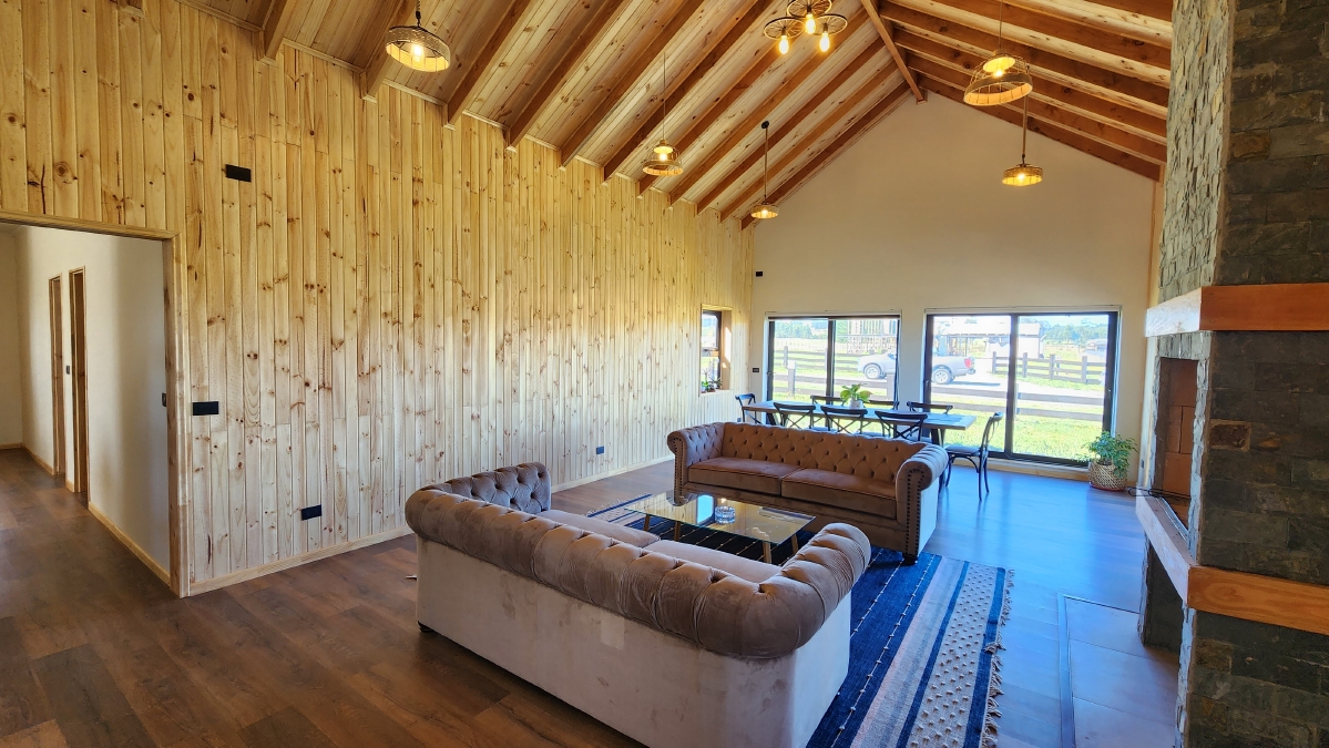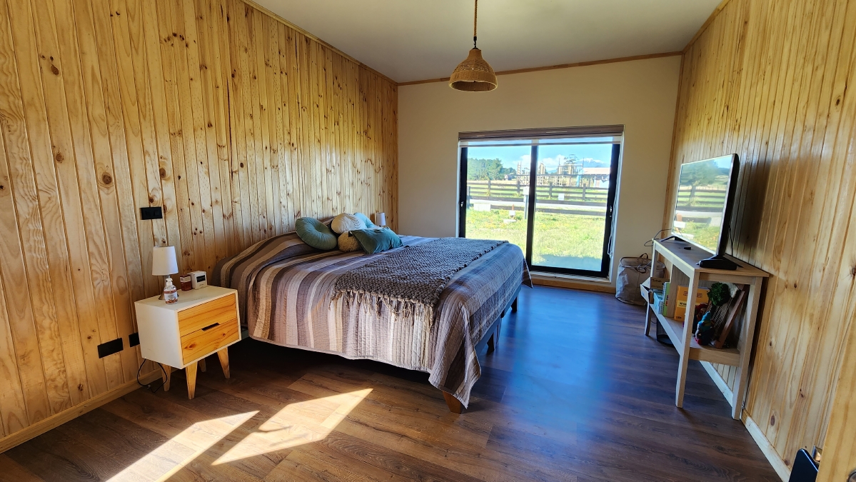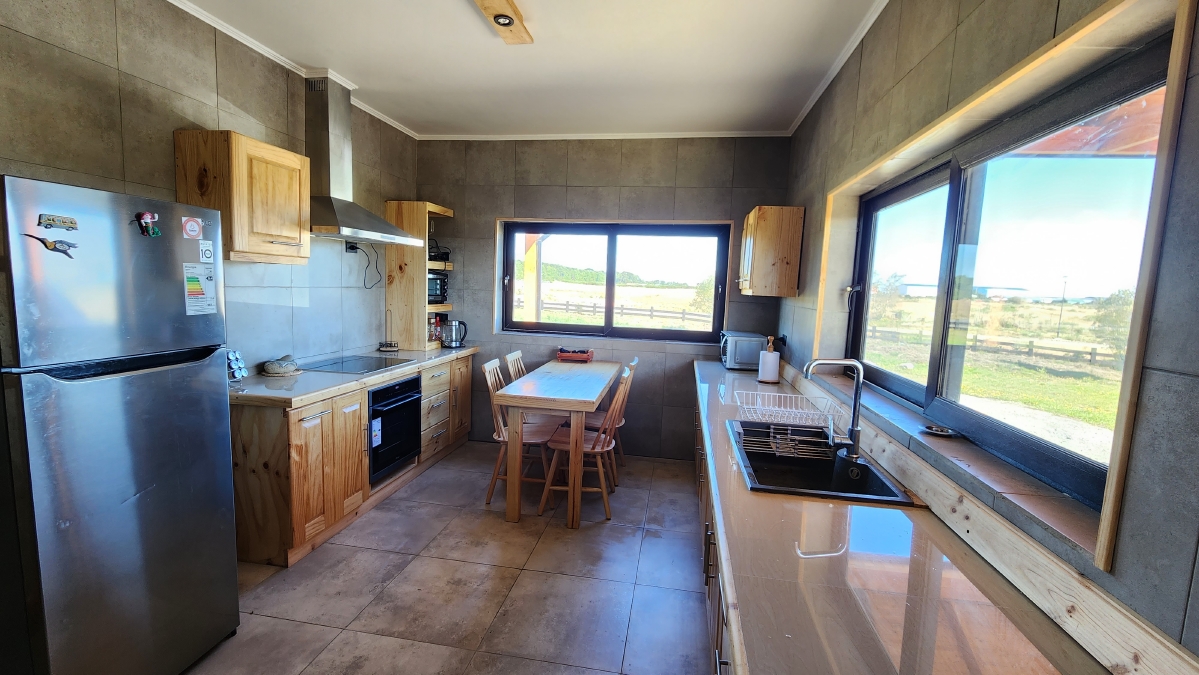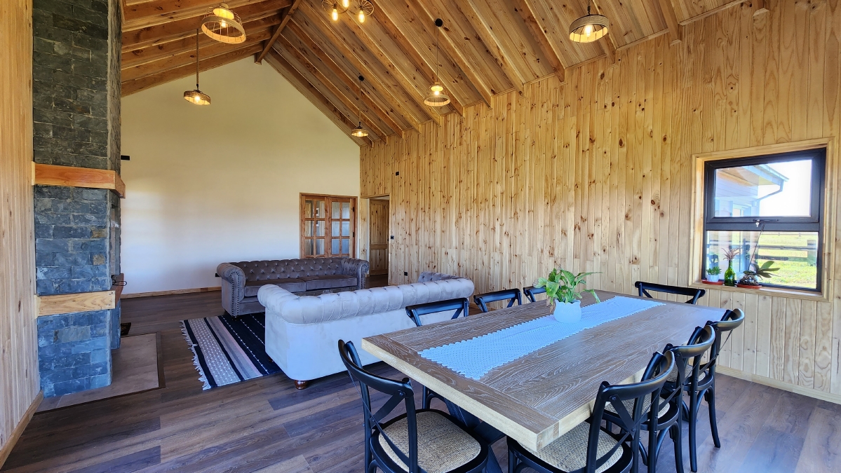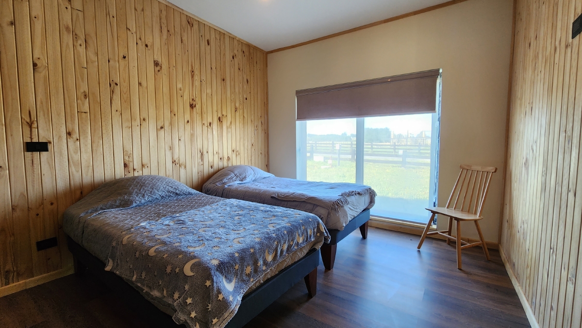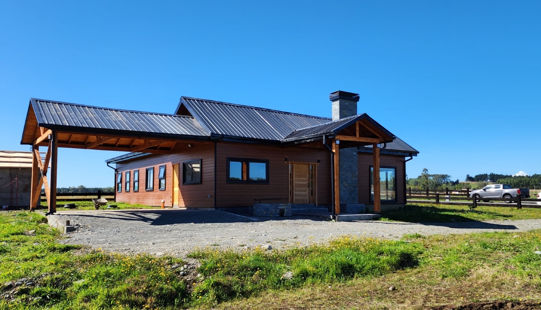 La casa comprende 180 m2 totales construidos al interior de una parcela de 5.350 m2, y cuenta con siguiente programa: Porche de acceso, amplio Living y Comedor en doble altura con vigas a la vista y ventanales para disfrutar de una vista plena al volcán Calbuco, chimenea empotrada con revestimiento de piedra, cocina cerrada completamente equipada y con comedor de diario y logia interior. En la zona privada se encuentra el baño de visitas y la sala de estar, 2 cómodos dormitorios cada uno con su closet que comparten un baño completo, y el Gran dormitorio principal se suite con vestidor, los dormitorios cuentan con vista panorámica.