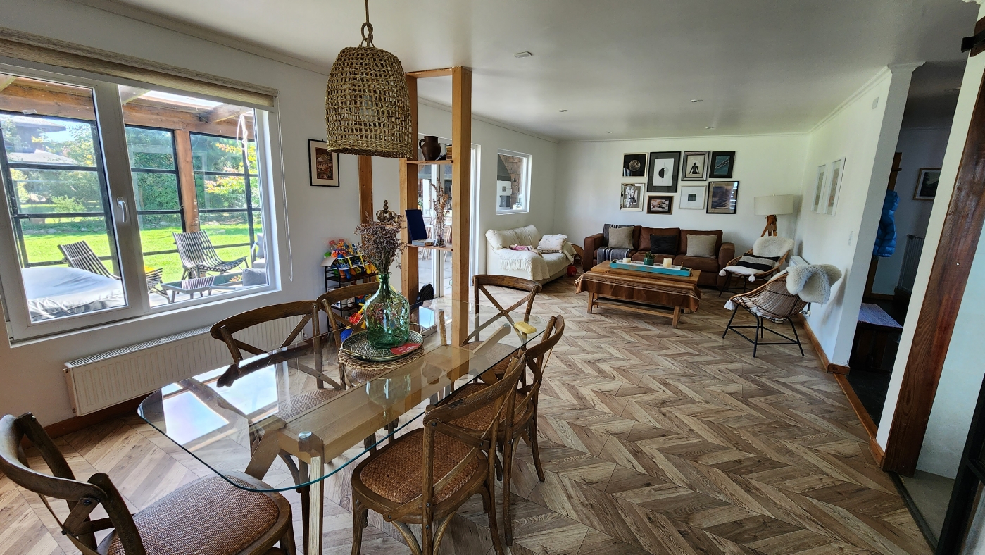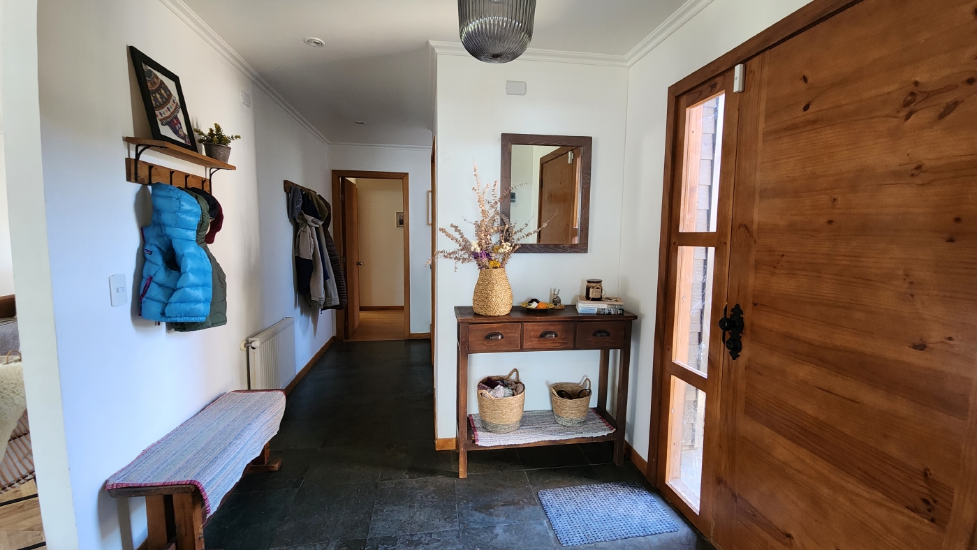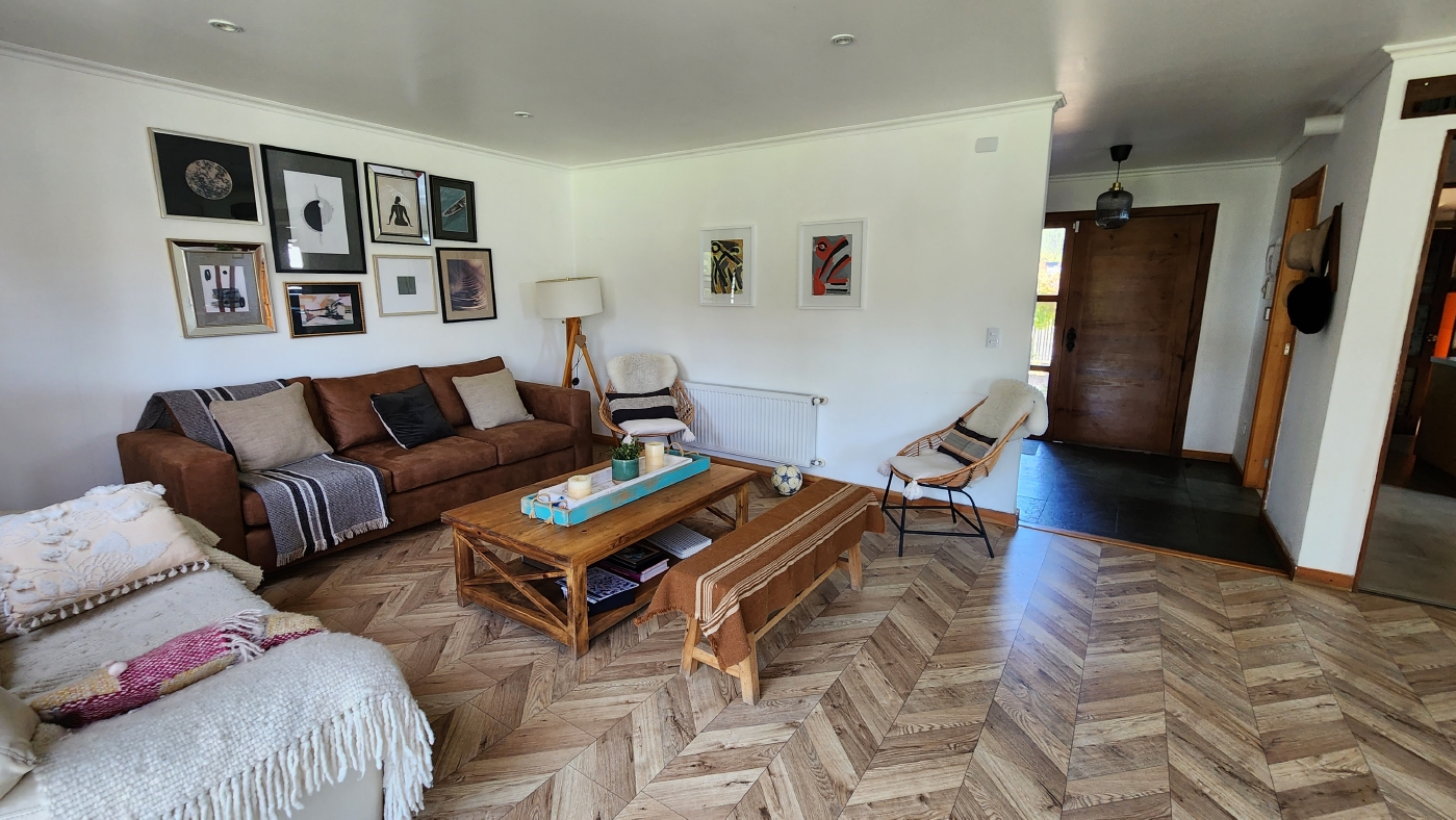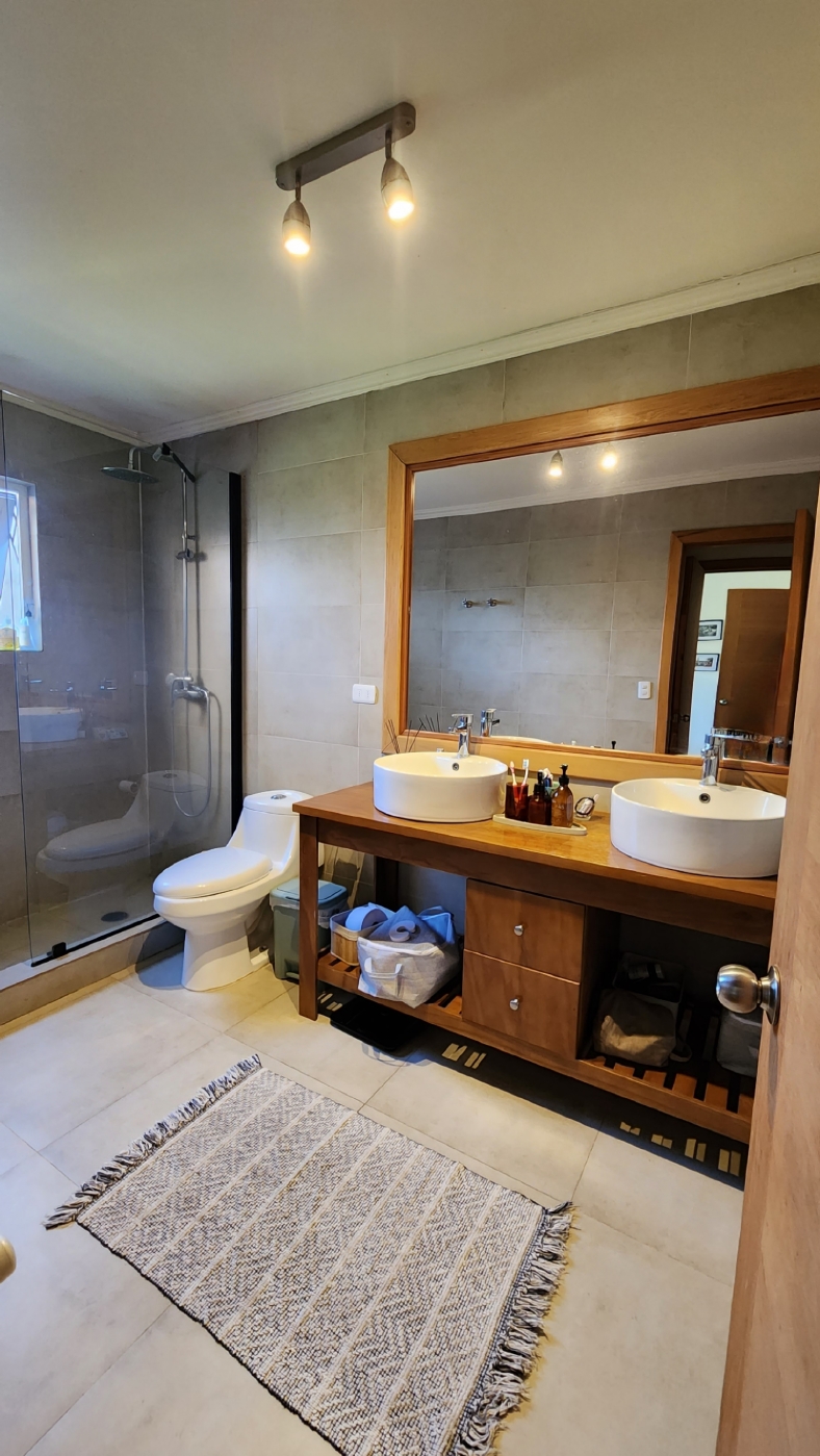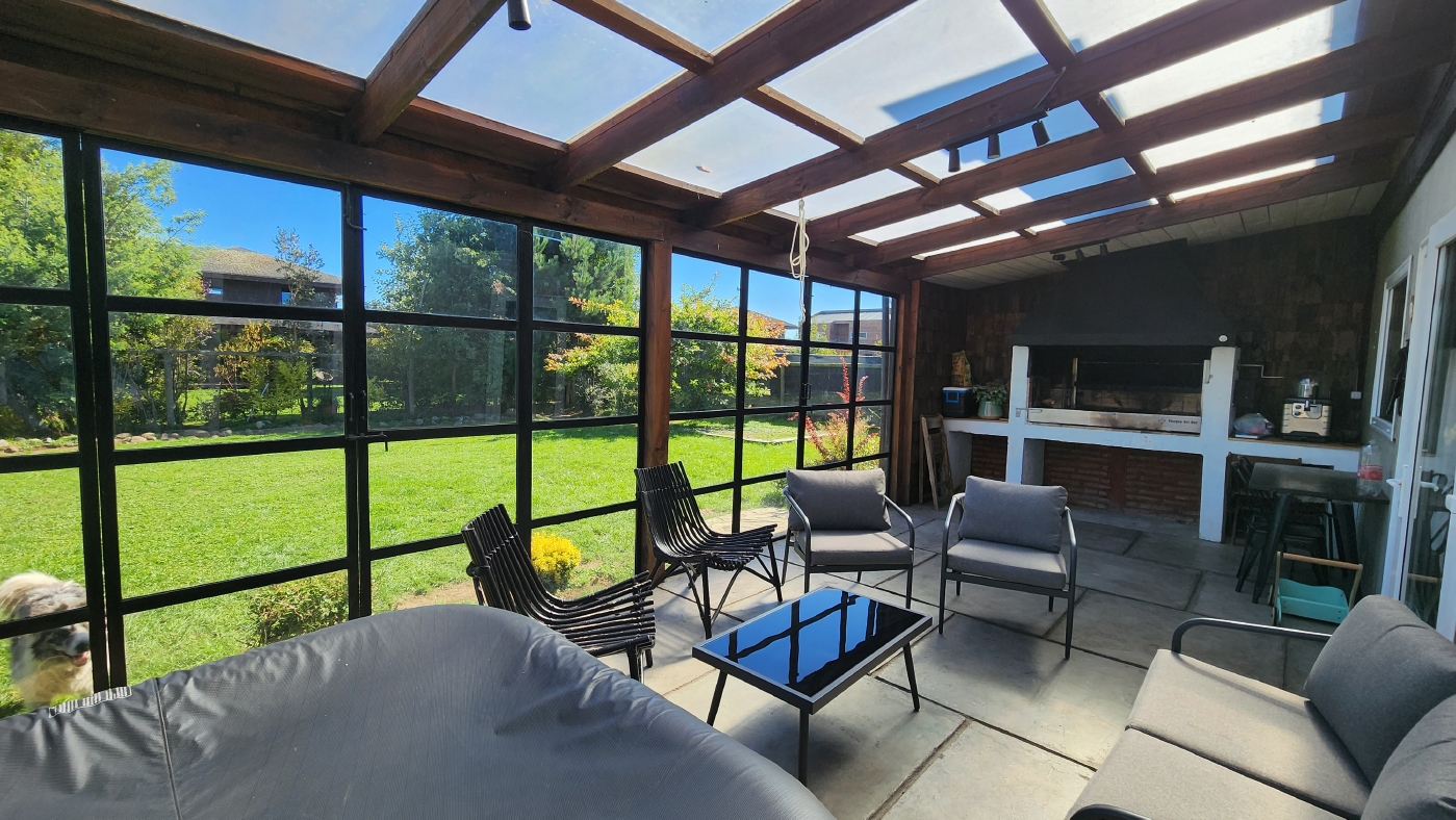 Cuenta con termopanel en todas las ventanas, calefacción central con radiadores en todos los recintos y caldera a Pellet, estacionamiento techado para 2 vehículos, portón automático; esta casa posee finas terminaciones en baños, cocina y pavimentos interiores.