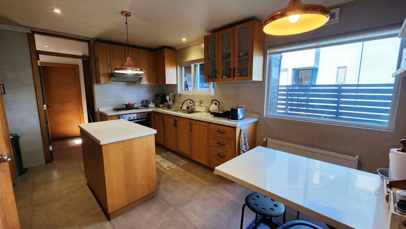 Primer Piso: Hall de acceso con baño de visita, acogedor living y comedor por separado, bella terraza cerrada tipo jardín de invierno con quincho incorporado, cocina amoblada con comedor diario e isla de apoyo, despensa, dormitorio de servicio completo, lavadero y zona de caldera con patio de servicios cerrado y bodega. En la zona privada gran dormitorio principal en suite, con amplio walking closet y escritorio separado o pieza de guagua.