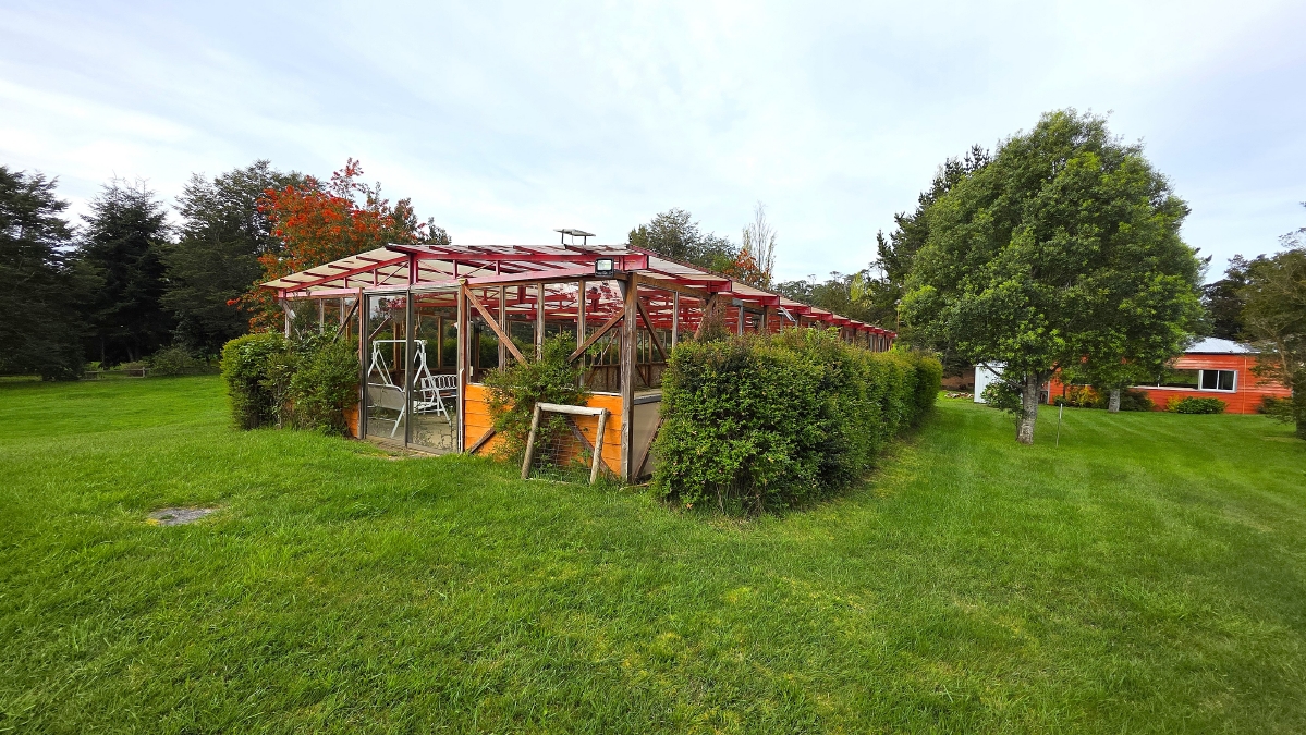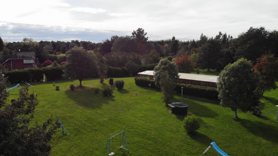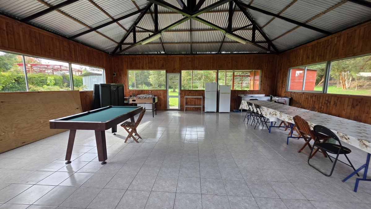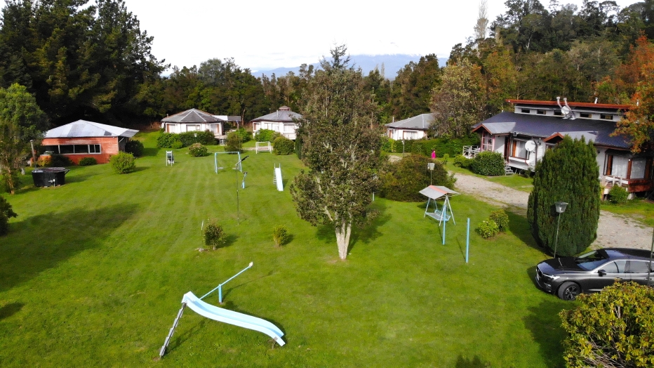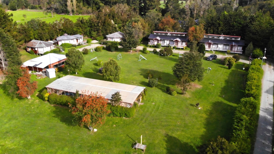 El predio comprende un terreno de 10.400 m2 para el uso turístico, en donde en su interior se albergan 7 cabañas, 100% operativas, para una dotación de al menos 45 huéspedes. El complejo posee además un área tipo quincho, piscina techada, hot tube, cancha de fútbol, tirolesa, entre otros juegos infantiles.