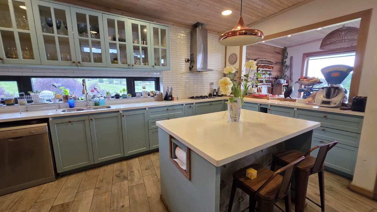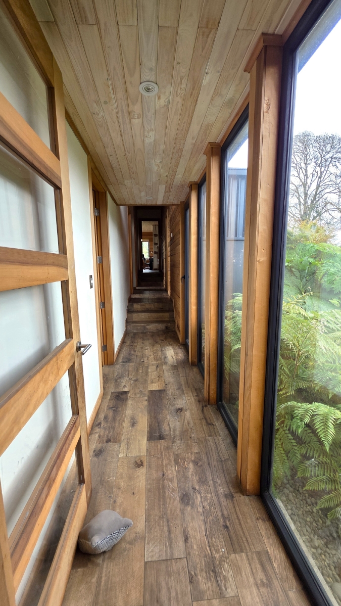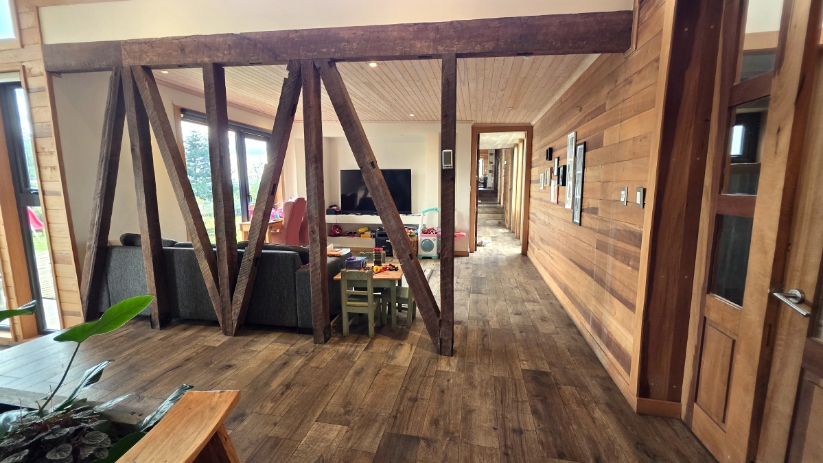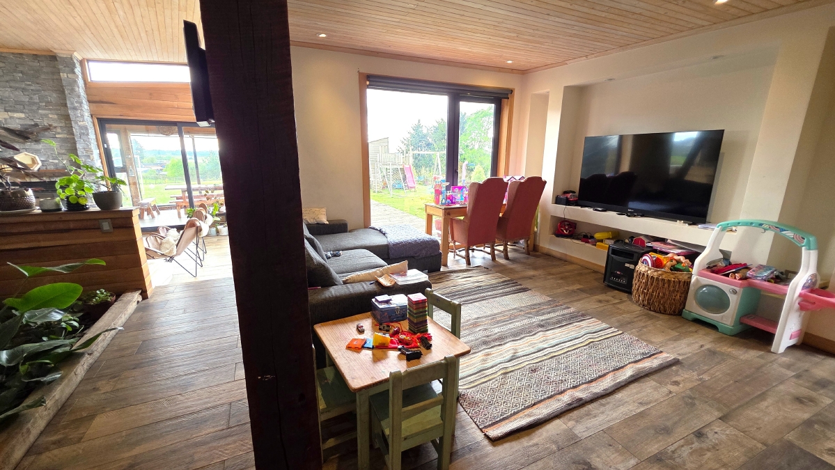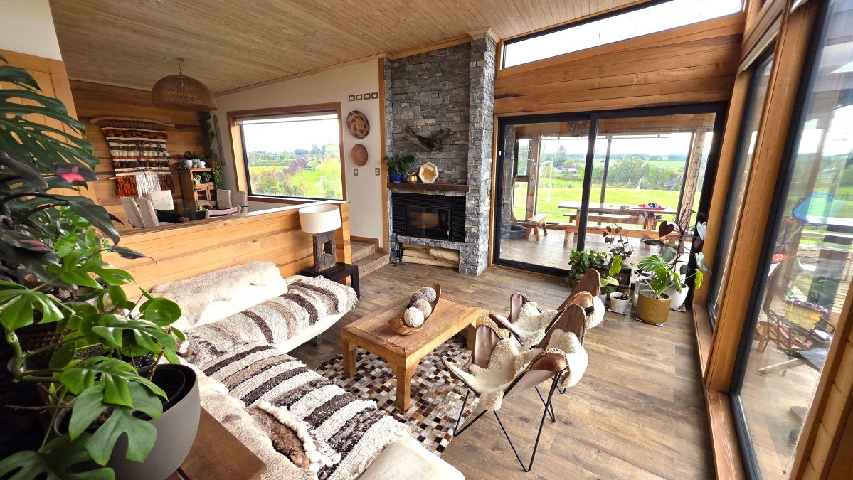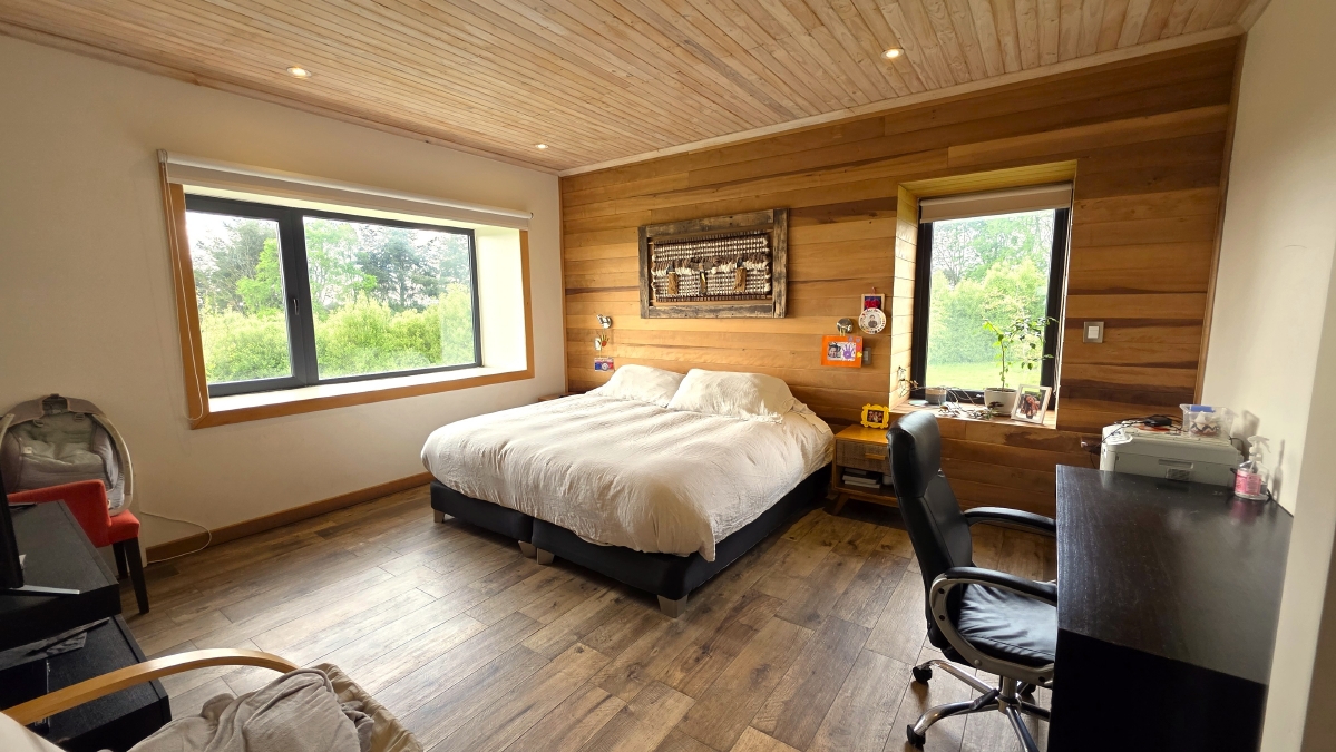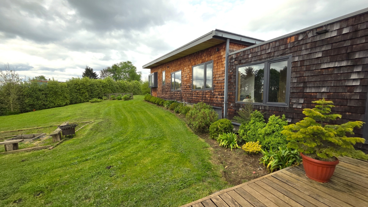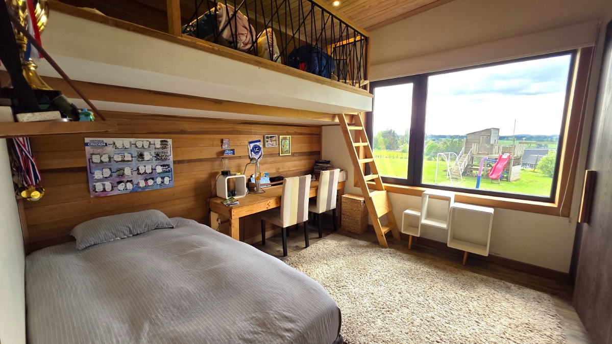 Cuenta con termopanel en todas las ventanas, calefacción central con losa radiante en todos los recintos, con bomba de calor y/o caldera a gas, bodega, gallinero, área de juegos, portón corredero; Esta casa cuenta con un gran trabajo de maderas recicladas, en su mayoría laurel, además posee terminaciones de primera calidad en baños, cocina y pavimentos interiores. Sistema constructivo innovador que crea una excelente envolvente térmica, sumado al revestimiento exterior de tejuela y zinc prepintado que no requieren mantención.