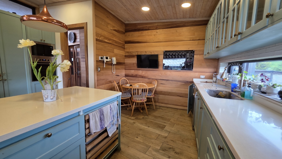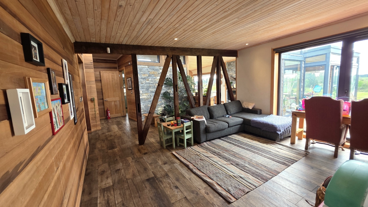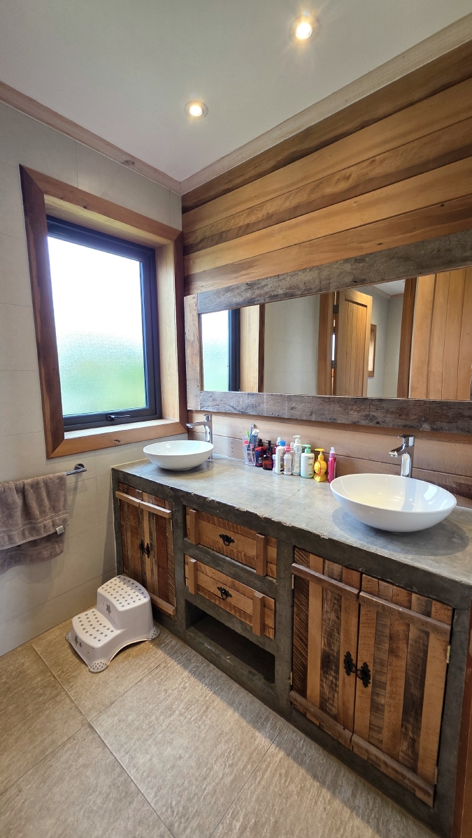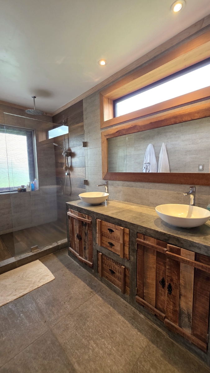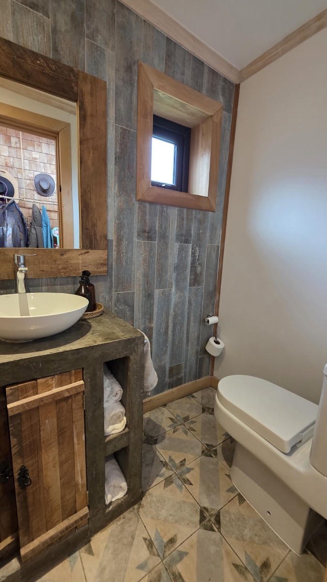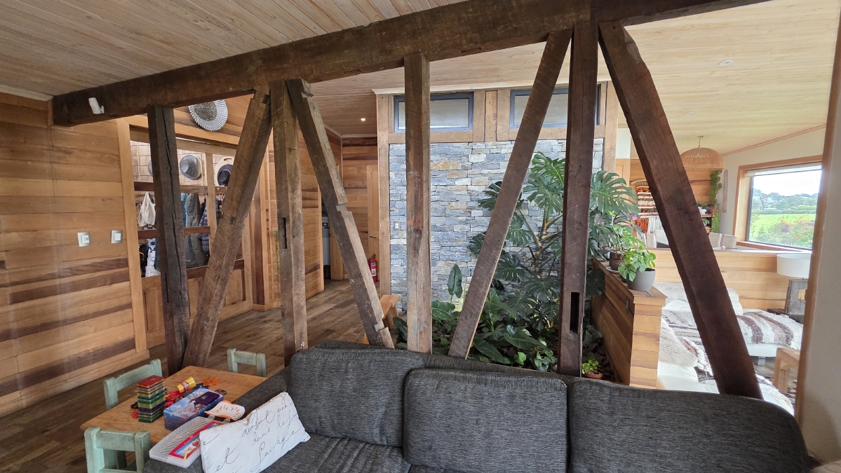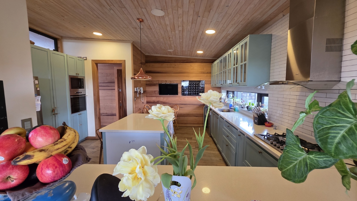 Cuenta con termopanel en todas las ventanas, calefacción central con losa radiante en todos los recintos, con bomba de calor y/o caldera a gas, bodega, gallinero, área de juegos, portón corredero; Esta casa cuenta con un gran trabajo de maderas recicladas, en su mayoría laurel, además posee terminaciones de primera calidad en baños, cocina y pavimentos interiores. Sistema constructivo innovador que crea una excelente envolvente térmica, sumado al revestimiento exterior de tejuela y zinc prepintado que no requieren mantención.