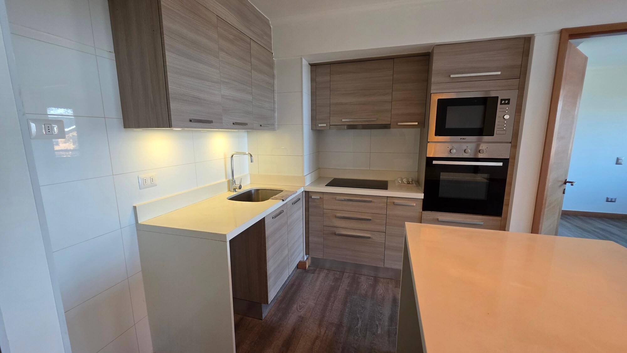 Se arrienda este bello departamento como nuevo que cuenta con 108 m2 útiles más 10 m2 de terraza panorámica, los cuales tienen la siguiente distribución: Primer piso, amplio living comedor, moderna cocina integrada, completamente equipada con encimera, horno, campana y microondas. 2 Amplios dormitorio en suite con Walkin, closet.